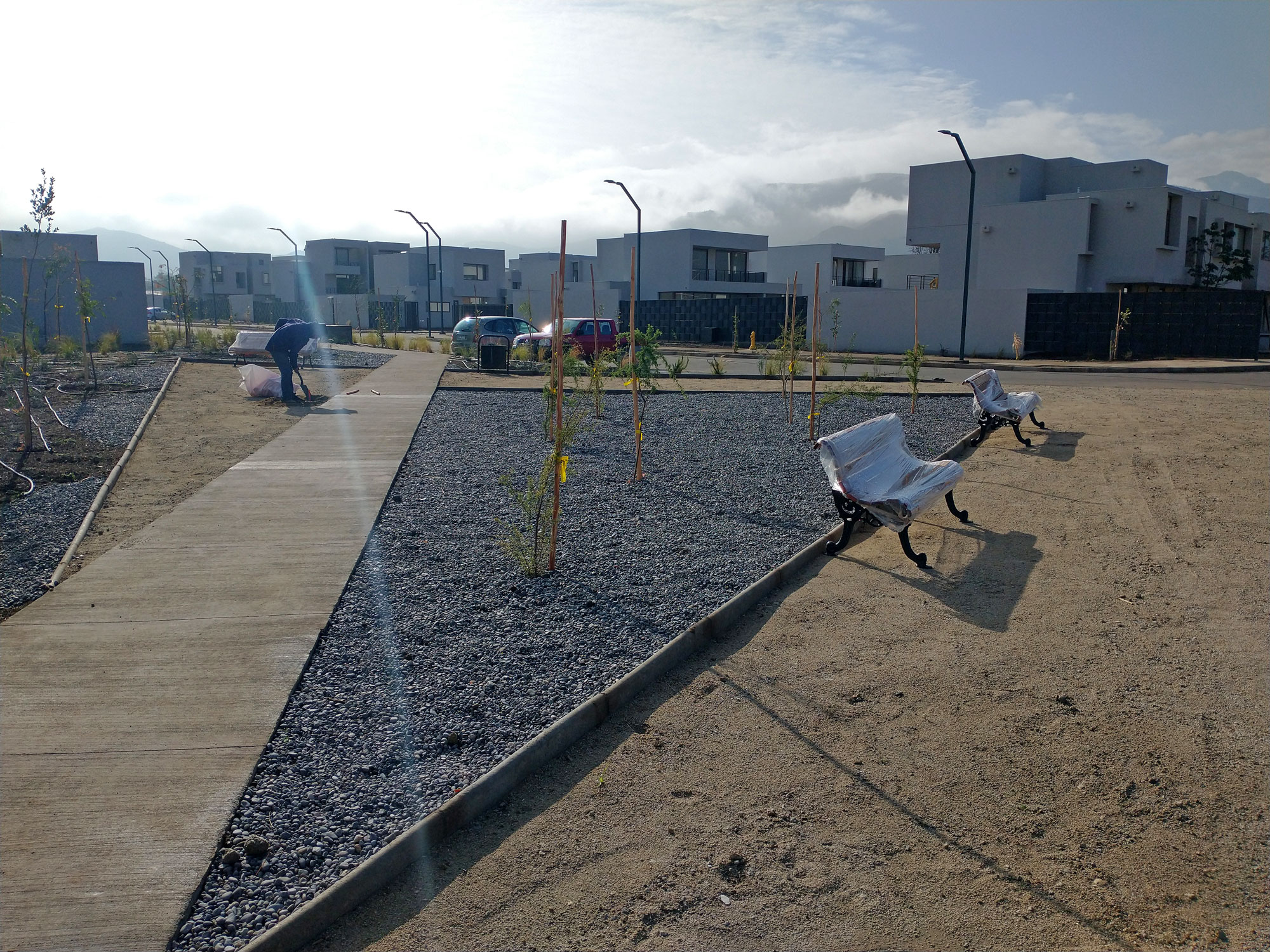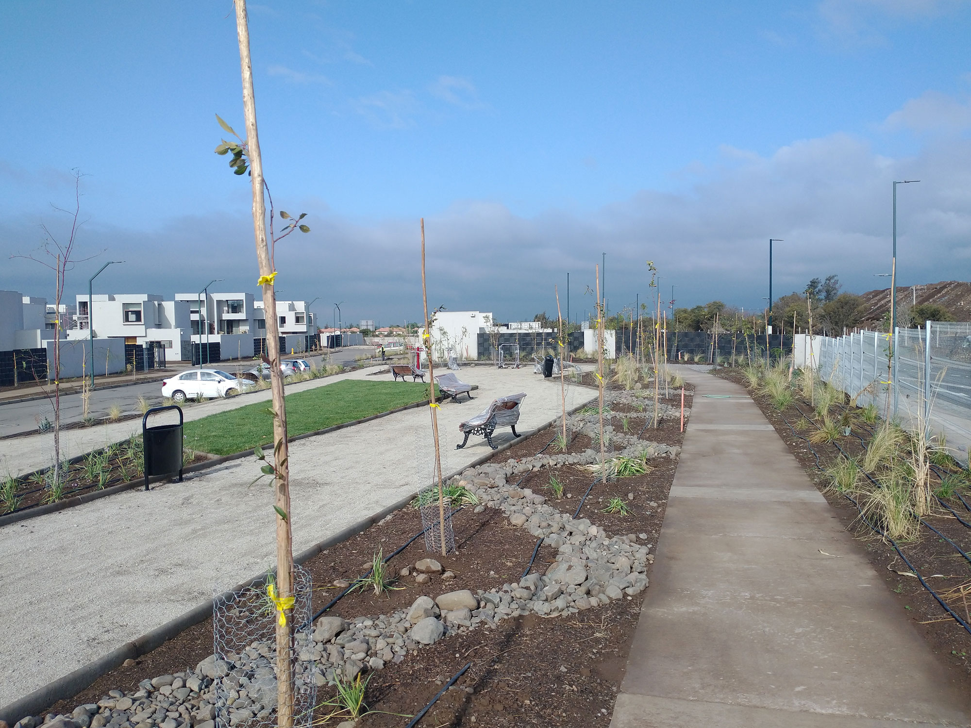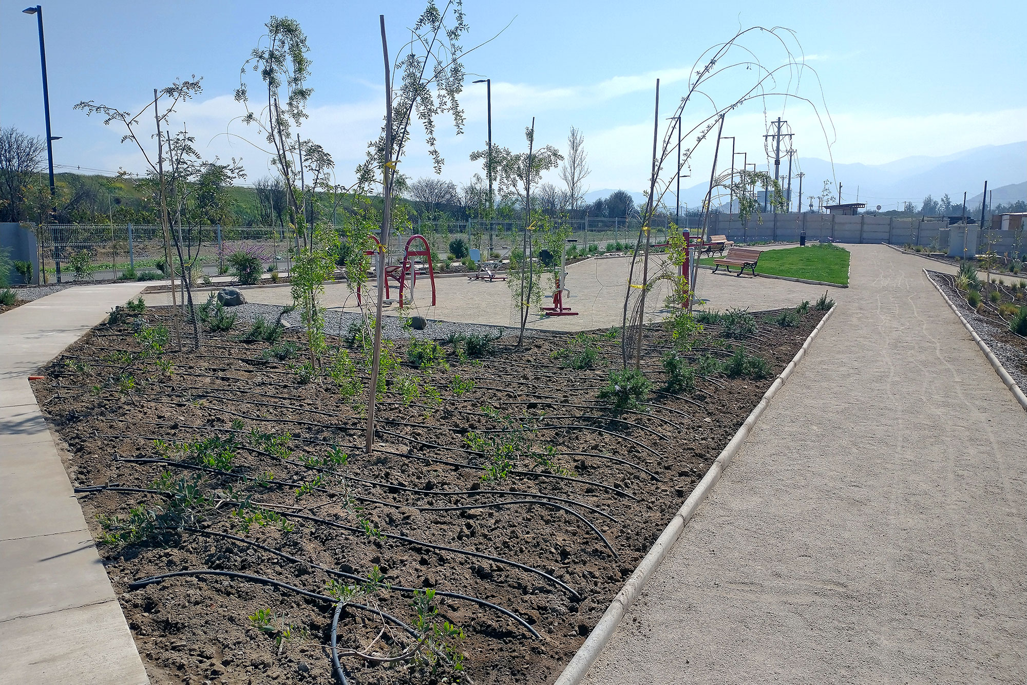 Proyecto desarrollado para la Inmobiliaria Garcia Bruce. El cual consistió en diseñar y construir un sistema de riego automático con goteo en zonas de plantación, aspersión en zonas de césped y válvulas de acople para riego manual. La ejecución del parque se gestionó en coordinación con paisajista realizando movimientos de tierra, pavimentos, mobiliario y juegos, máquinas de ejercicio, senderos de hormigón y la plantación de 3.000 especies. Superficie: 7.000 M2.